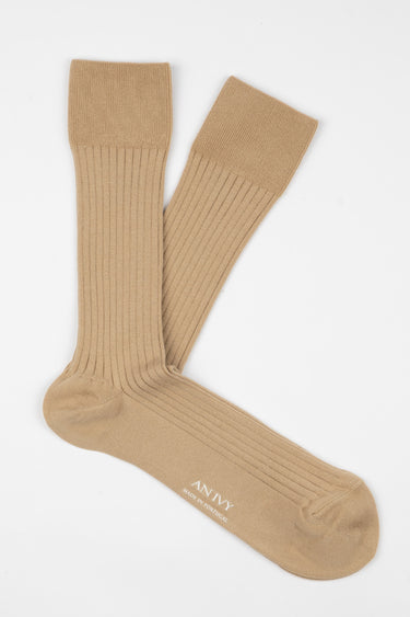 Beige Ribbed Cotton Socks