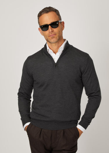 From Wall Street to a casual Sunday brunch, this versatile wardrobe must-have goes with it all. Our Half Zip is made from finely knitted Extra Fine Merino wool of the best quality. The light and soft wool means that it can be used all day.