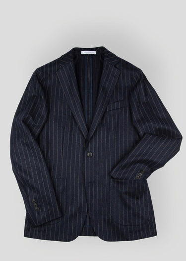 Flannel Blazer, Unstructured, Navy Brown Striped