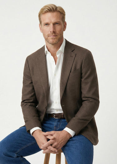 Our Soft Hopsack Blazer in brown is, like our other blazers in the range, made “unstructured”, where there is no lining in the back and no pads in the shoulders. The blazer is equipped with sewn-on pockets, AMF stitching and horn buttons. All this gives the jacket its very special “effortless” casual look, as well as creating better breathability of the back and flexibility in the jacket. The blazer jacket is carefully sewn in Portugal, by skilled and thorough hands. Many challenging processes are required to achieve this seemingly effortless jacket.