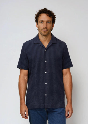 Our dark blue Waffle camp collar shirt is made with long fibers in Pima cotton, which is one of the finest types of cotton in the world. In contrast to ordinary cotton, the Pima cotton is a finer type of cotton that is twice as strong, which gives the shirt an extra long life.